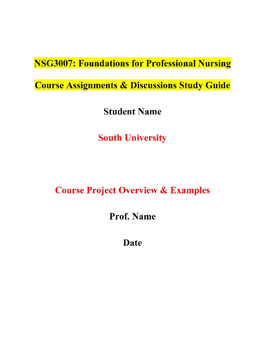NSG3007: Foundations for Professional Nursing Course Assignments & Discussions Study Guide